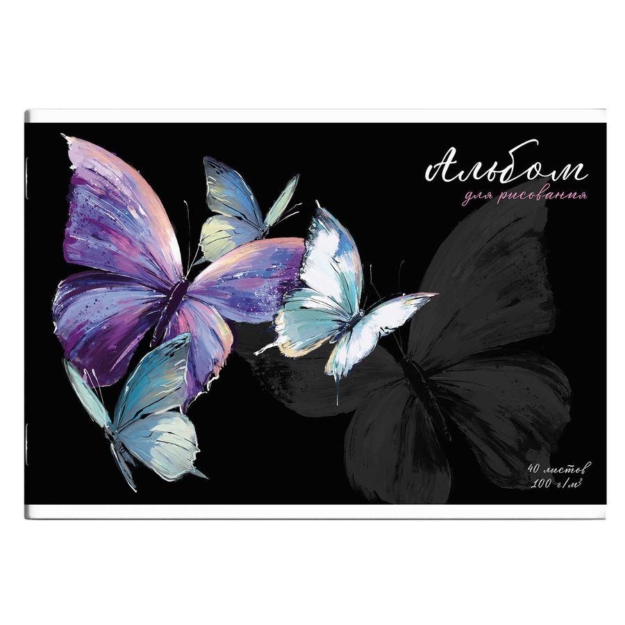 Альбом для рисования А4 40л скрепка Бабочки УФ-лак 100г/м2 ФЕНИКС+ 66925 (жен)