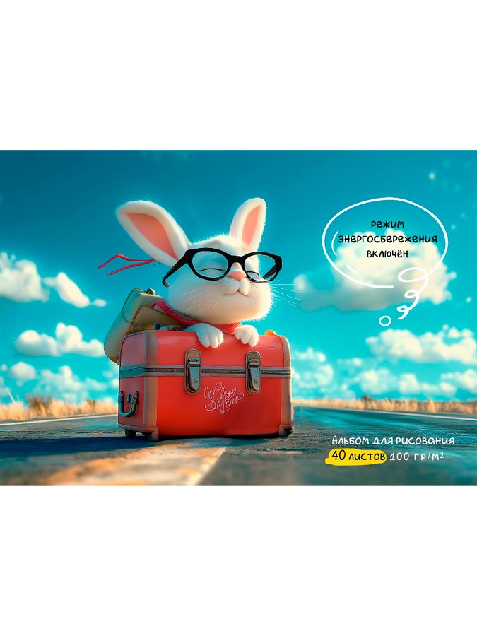 Альбом для рисования А4 40л гребень Зайка-путешественник 100г/м2 PROF-PRESS 40-9016 (уни)