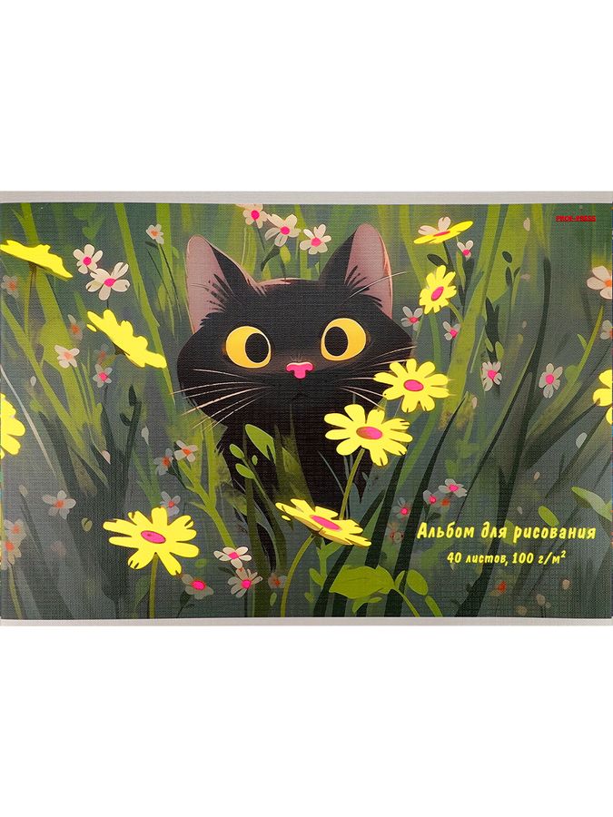 Альбом для рисования А4 40л скрепка Котик в траве 100г/м2 PROF-PRESS 40-2352 (жен)