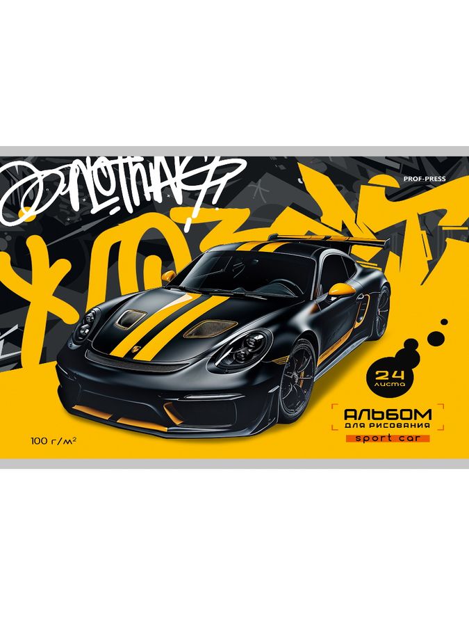 Альбом для рисования А5 24л скрепка Автомобили и граффити 100г/м2 PROF-PRESS 24-2185 (муж)