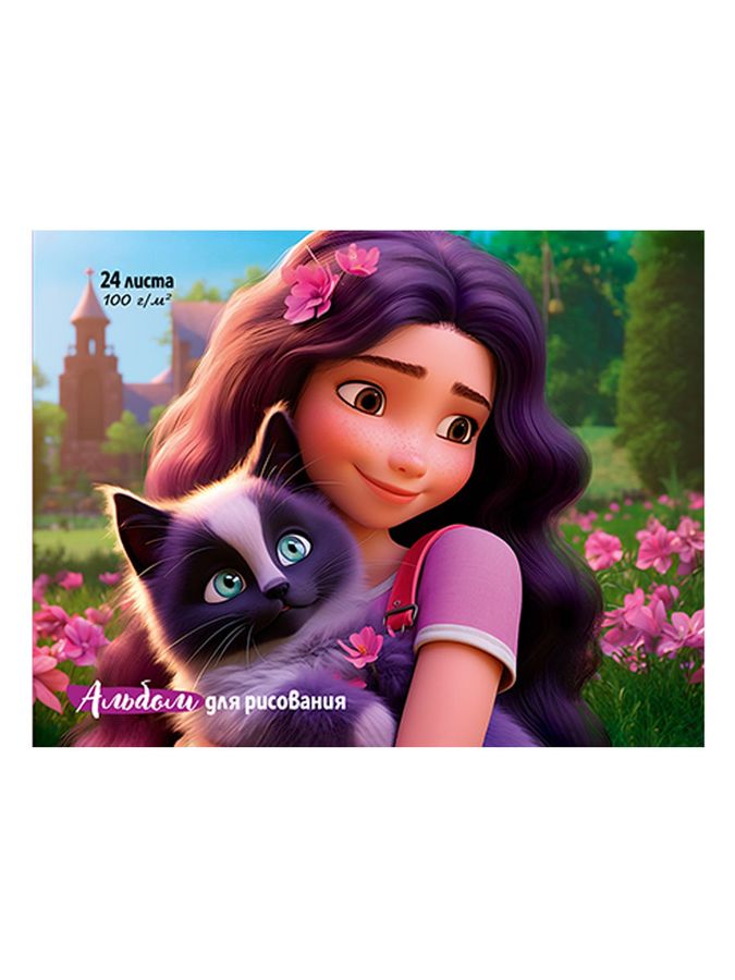 Альбом для рисования А5 24л скрепка Котик и девушка 100г/м2 PROF-PRESS 24-2183 (жен)