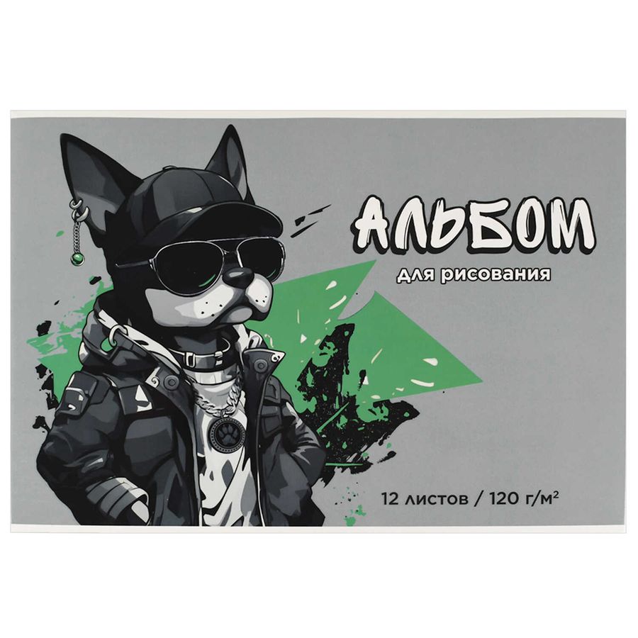 Альбом для рисования, КРУТОЙ ПЕС. (формат А4). Количество листов: 12 листов. Внутренний блок - белый офсет 120 г/м². сплошной глянцевый УФ-лак. Вид крепления - мягкий переплёт (2 скобы). КРУТЫЕ ЗВЕРЯТА КРУТОЙ ПЕС