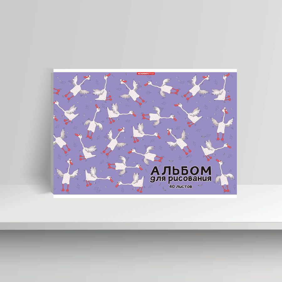 Альбом для рисования А4 40л скрепка Гусики мат.лам. 100г/м2 ACADEMY STYLE 15388 (уни)