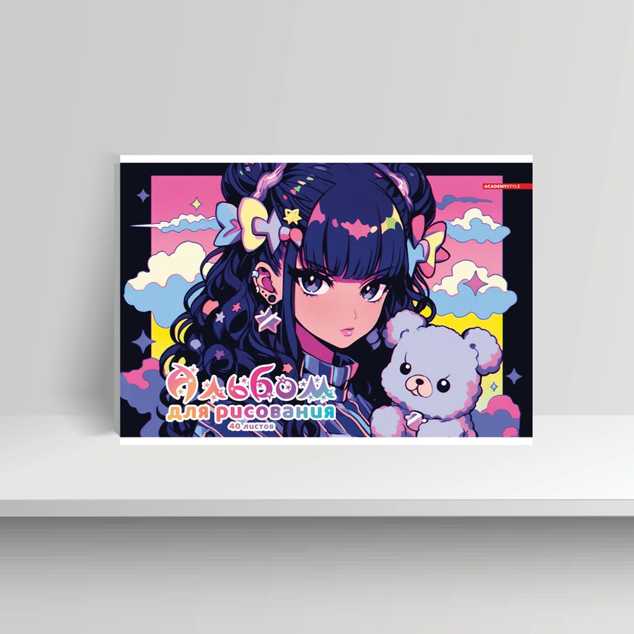 Альбом для рисования А4 40л скрепка Девочка с мишкой soft touch 100г/м2 ACADEMY STYLE 15368 (жен)