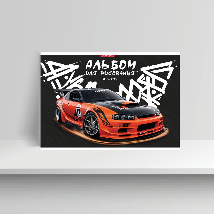 Альбом для рисования А4 40л скрепка Тачки 25 ВД-лак 100г/м2 ACADEMY STYLE 15358 (муж)