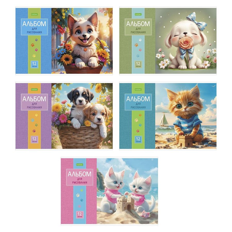 Альбом для рисования А4 12л скрепка ECO Пушистые мордочки ассорти 5 диз. 100г/м2 HATBER 12А4C (уни)
