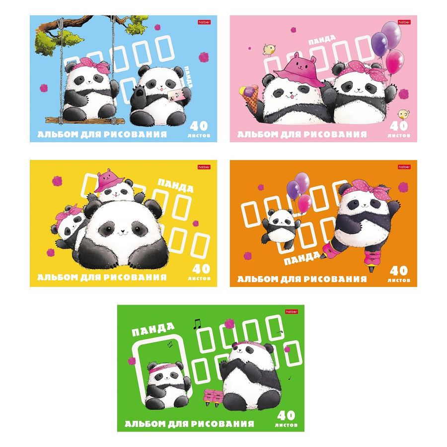 Альбом для рисования А4 40л скрепка Плюшевые панды ассорти 5 диз. 100г/м2 HATBER 40А4В (уни)