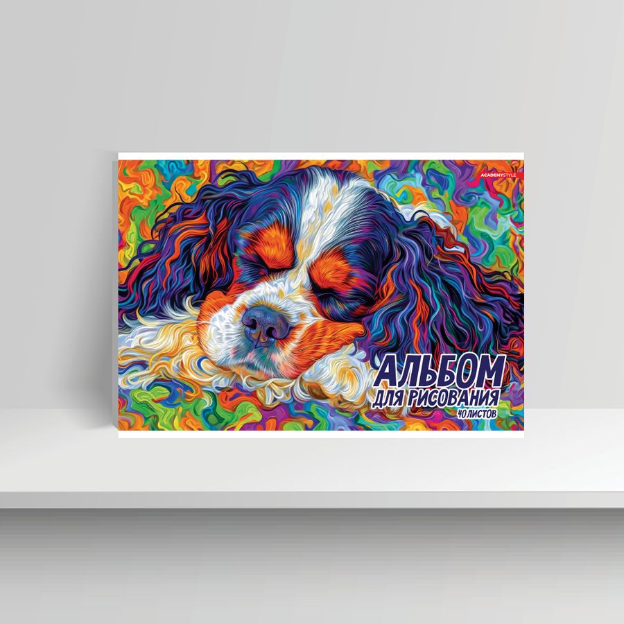 Альбом для рисования А4 40л скрепка мелов.картон Спаниель soft touch 100г/м2 ACADEMY STYLE 15366 (уни)