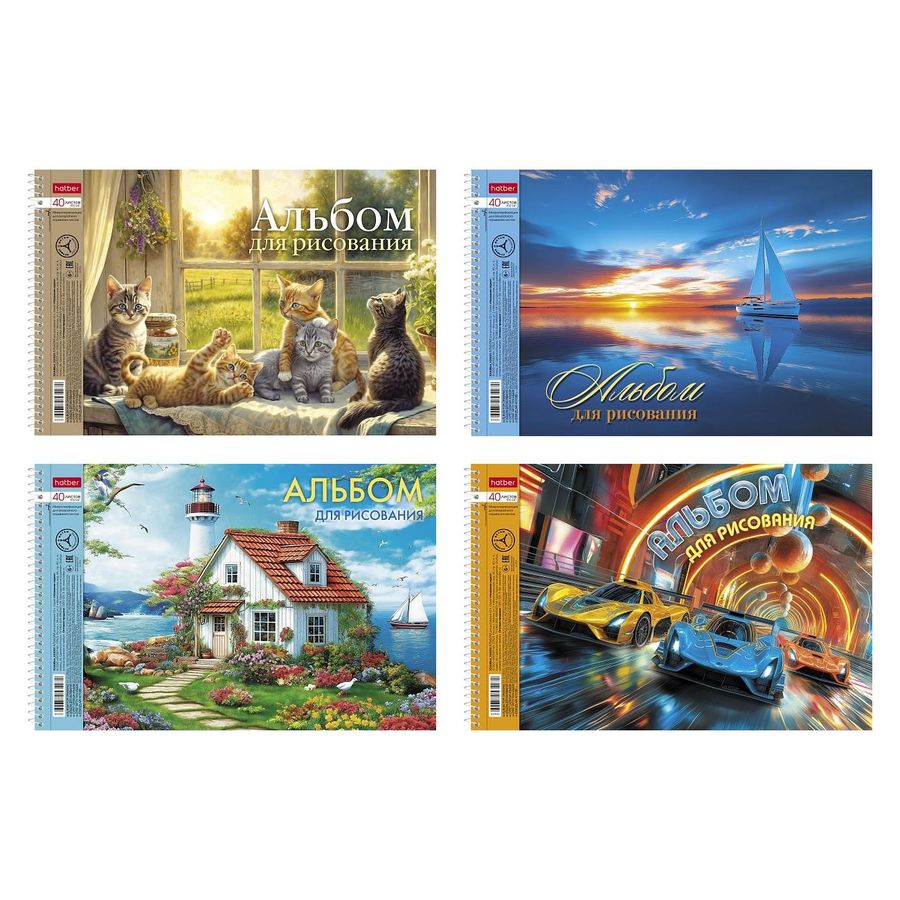 Альбом для рисования А4 40л спираль мелов.картон Выпуск №4 ассорти 100г/м2 HATBER 40А4Всп (уни)