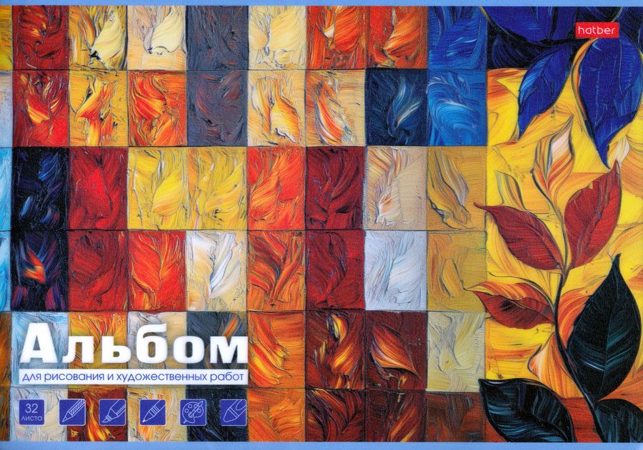 Альбом для рисования А4 32л скрепка пласт.обл. Торжество цвета ассорти 100г/м2 HATBER 32А4Впл (уни)