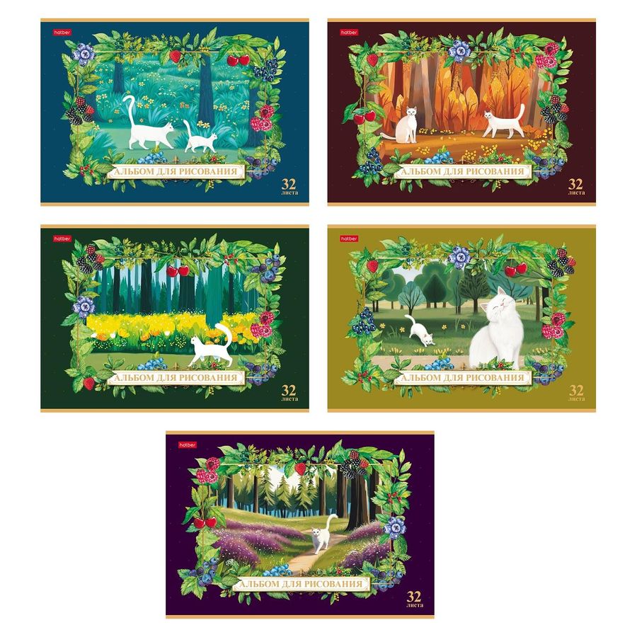 Альбом для рисования А4 32л скрепка мелов.картон Из жизни котиков ассорти 100г/м2 HATBER 32А4лВ