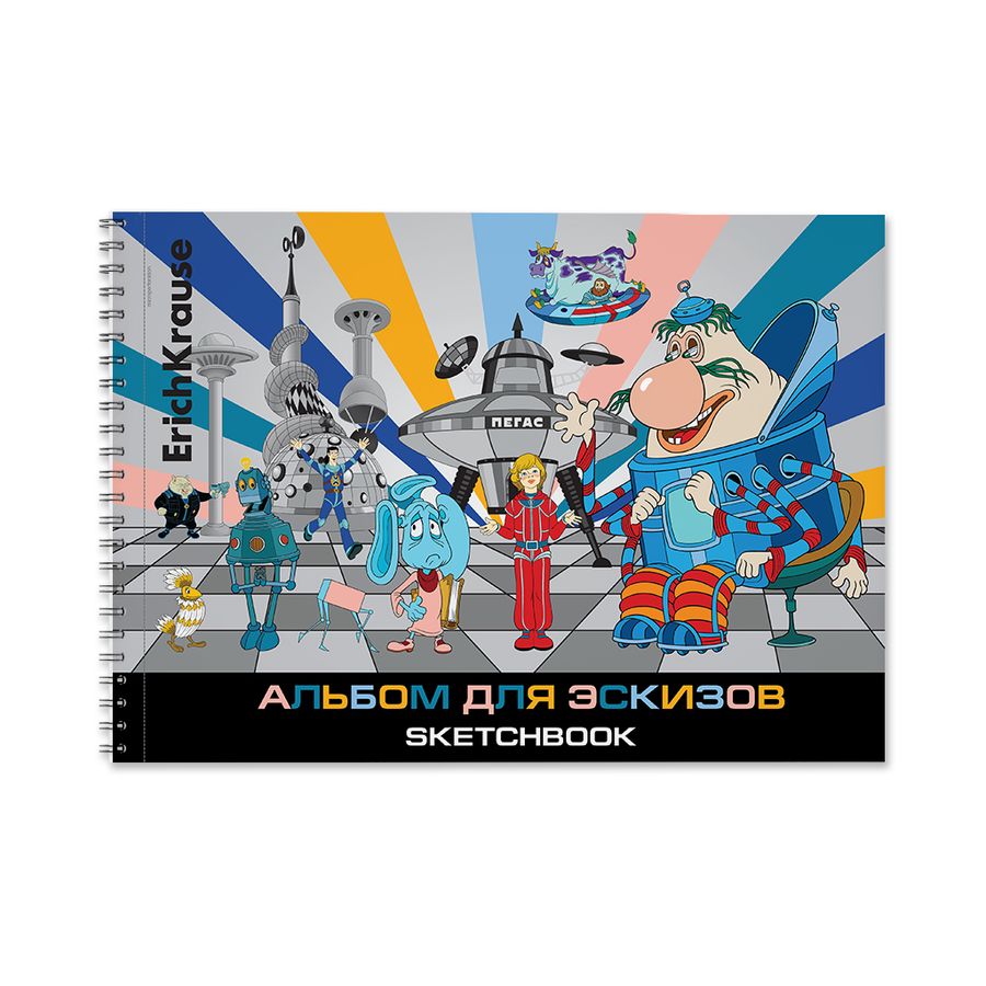 Альбом для эскизов формата А4 (210х294 мм). Обложка из высококачественного мелованного картона плотностью 170 г/м2. Жесткая подложка 360 г/м2. В блоке 20 листов. Бумага плотностью 120 г/м2. Белизна бумаги - 100%. Микроперфорация для отрыва. Тип скрепления - спираль.