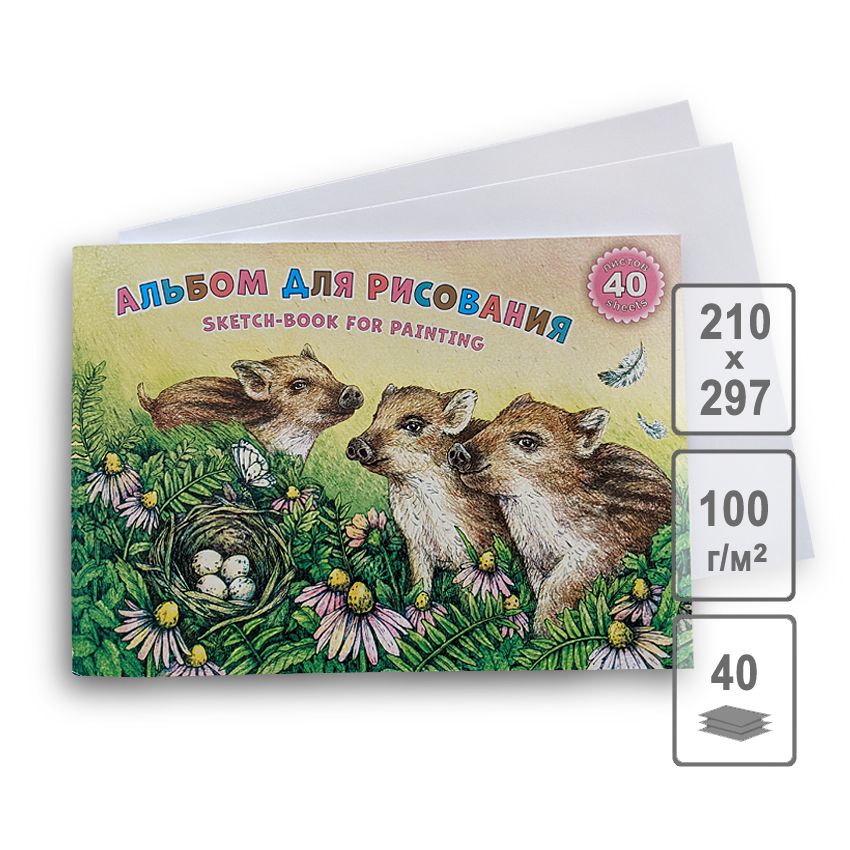 Альбом д/рисов. "Озорные кабанчики" на склейке 40 л 210х297 Внутренний блок – белоснежная офсетная бумага, плотность 100г/м2, подходит для рисования цветными карандашами, фломастерами, восковыми мелками. Можно использовать для занятий как дома, так и в детском саду или школе.