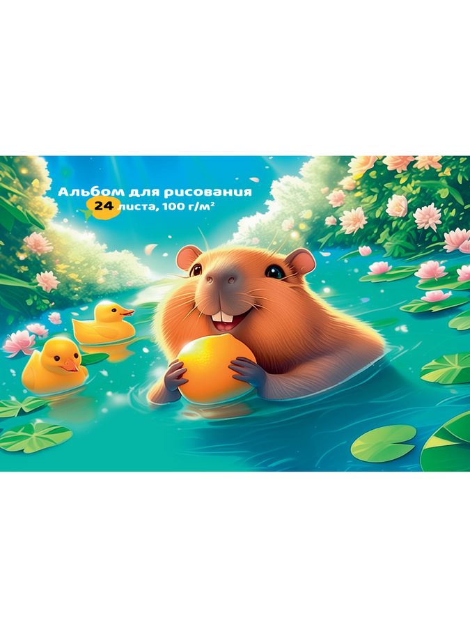Альбом для рисования А4 24л склейка мелов.картон Капибара с утками 100г/м2 PROF-PRESS 24-7752 (жен)
