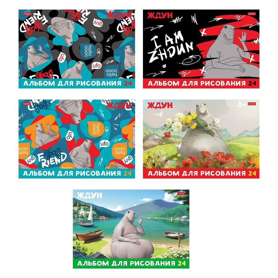 Альбом для рисования А4 24л скрепка мелов.картон ЖДУН ассорти 5 диз. 100г/м2 HATBER 24А4В (уни)