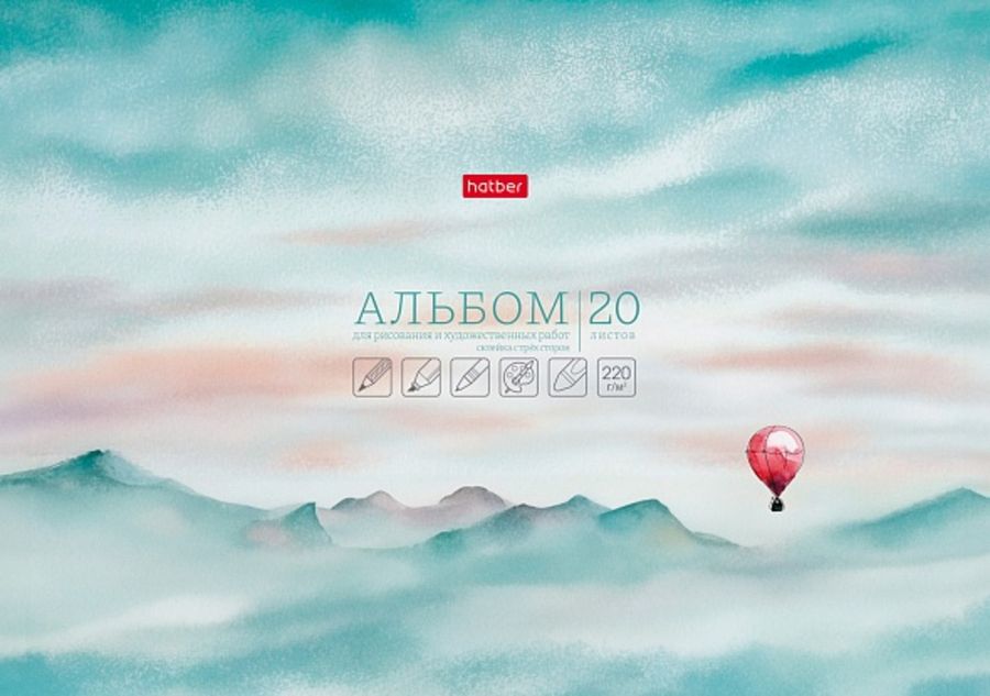 Альбом для рисования А4 20л склейка Воздушный шар жест.подл. 220г/м2 HATBER 20А4лAк_33200 (уни)