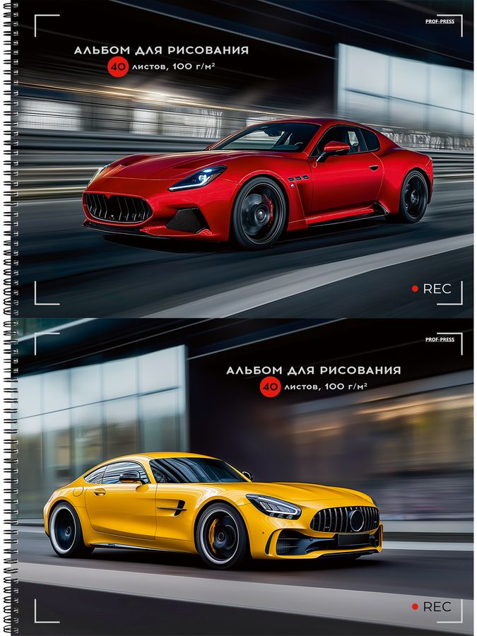 Альбом для рисования А4 40л гребень мелов.картон Шикарные автомобили-5 ассорти PROF-PRESS 40-7881 (муж)