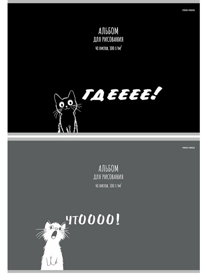 Альбом для рисования А4 40л скрепка мелов.картон Забавные коты-3 ассорти 100г/м2 PROF-PRESS 40-7786 (уни)