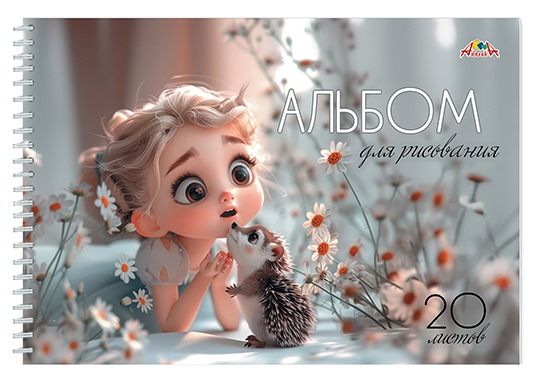 Альбом для рисования, 20 листов, формат А4, плотность 100 гр/м2. Внутренний блок - высококачественная офсетная бумага. Обложка - мелованный картон, полноцветная печать с защитным ВД-лаком. Крепление - металлическая евроспираль.