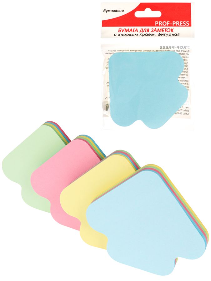 Фигурный блок бумаги с клеевым краем поможет не забыть о важных делах и быстро записать полезную информацию. Яркий стикер хорошо заметен на рабочем столе. На край листа наносится специальный клей, который не впитывается в бумагу и не оставляет следов на любой поверхности. Липкий слой приклеивается к пластику, стеклу, металлу, бумаге и хорошо удерживает стикер. Листки легко отделяются от блока. Количество: 100 листов, 4 цвета.