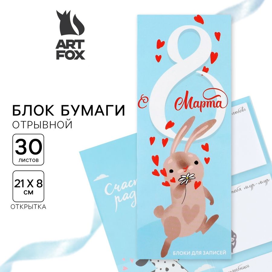 Блок для записей 21х8см 30л Заяц 8 марта в открытке ArtFox 10018385