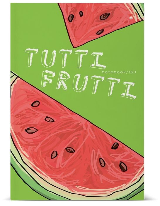 Блокнот для записей "Fresh and Fruity" от Bruno Visconti. Это компактный блокнот объемом 160 листов, с линовкой в клетку. Формат А5. Обложка изготовлена из твердого картона с глянцевой ламинацией. Обложка оформлена рисунком из арбузных долек в стиле скетчинга. Такой блокнот не затеряется на рабочем столе благодаря яркому дизайну. Он не займет много места в сумке или рюкзаке. Стильный, удобный и качественный блокнот. Бумажный блок выполнен из белой бумаги в клетку плотностью 55 г/кв.м, закреплен книжным переплетом. Углы обложки и блока прямые. Есть возможность составить комплект, заказав другие товары из этой коллекции, например, тетради и карандаши. В стандартной упаковке 16 блокнотов.