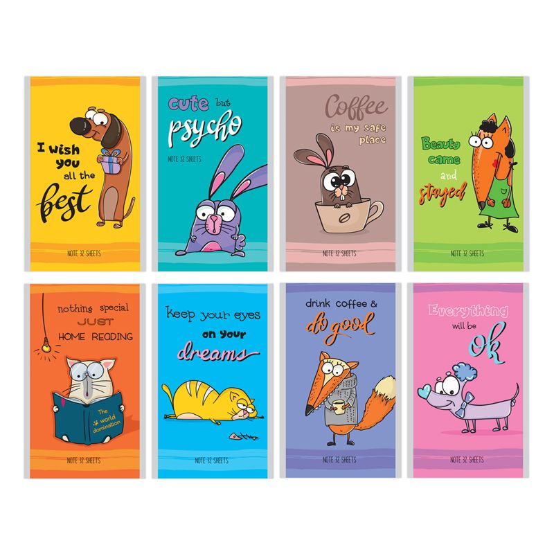ВНИМАНИЕ: БОЛЬШИНСТВО ЭЛЕМЕНТОВ В НАБОРЕ МОГУТ ИМЕТЬ ОДИНАКОВЫЙ ДИЗАЙН Блокнот BG «Добрые советы» формата А6 прекрасно подойдёт для работы и учёбы. Блокнот размером 102*165 мм состоит из 32 листов офсетной бумаги белого цвета плотностью 60 г/м2. Линовка – клетка. Вид крепления – скрепка. Мягкая обложка – мелованный картон. В упаковке в термоусадочную плёнку ассорти ярких забавных дизайнов, которые с лёгкостью поднимут настроение. • формат: А6 (102*165 мм); • кол-во листов: 32; • линовка: клетка; • вид скрепления: скрепка; • материал обложки: мелованный картон.