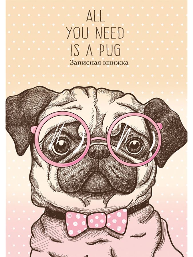 Книжка записная А6 64л клетка тв.обл. Мопсик в очках глянц.лам. PROF-PRESS 64-6838