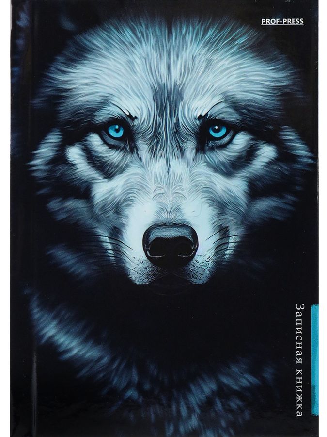 Книжка записная А6 48л клетка тв.обл. Волк на черном глянц.лам. PROF-PRESS 48-5741