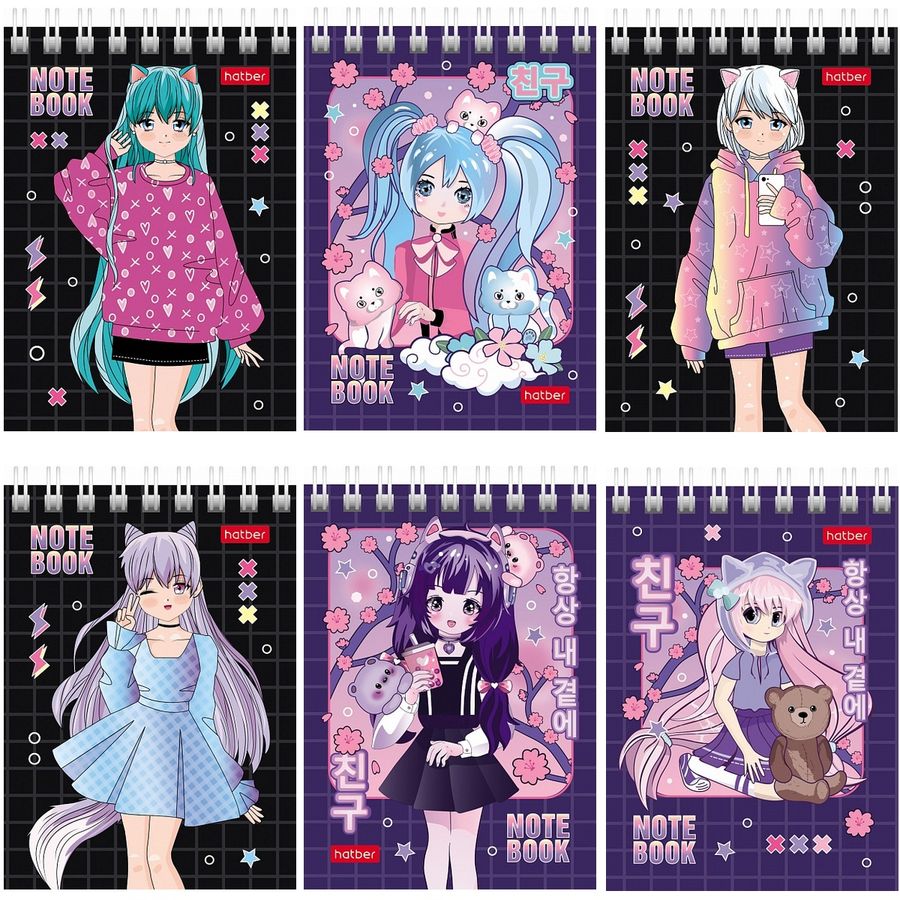 Блокнот А7 60л клетка гребень Неко-Тян_аниме HATBER 60Б7В1гр