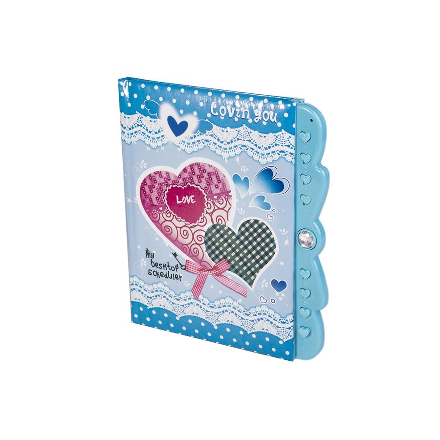 Блокнот с замком А6 50л линия тв.обл. Кружевные сердца голубой ALINGAR AL10067/1