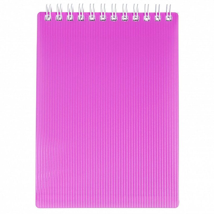 80Б7В1гр_03033 Блокнот 80л А7ф клетка Пластиковая обложка на гребне LINE NEON Розовый