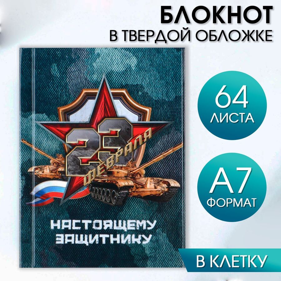 Блокнот А7 64л клетка тв.обл. 23 Февраля Танк ArtFox 9166299