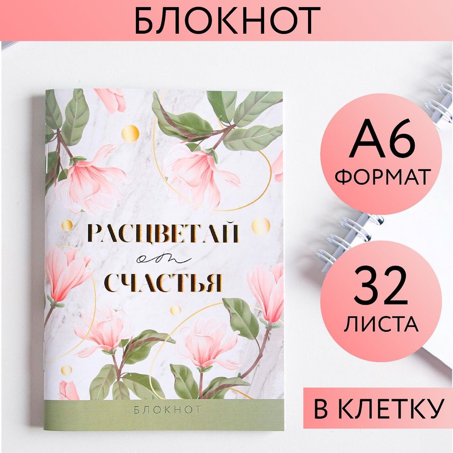 Блокнот А6 32л клетка скоба Расцветай от счастья ArtFox 5360757