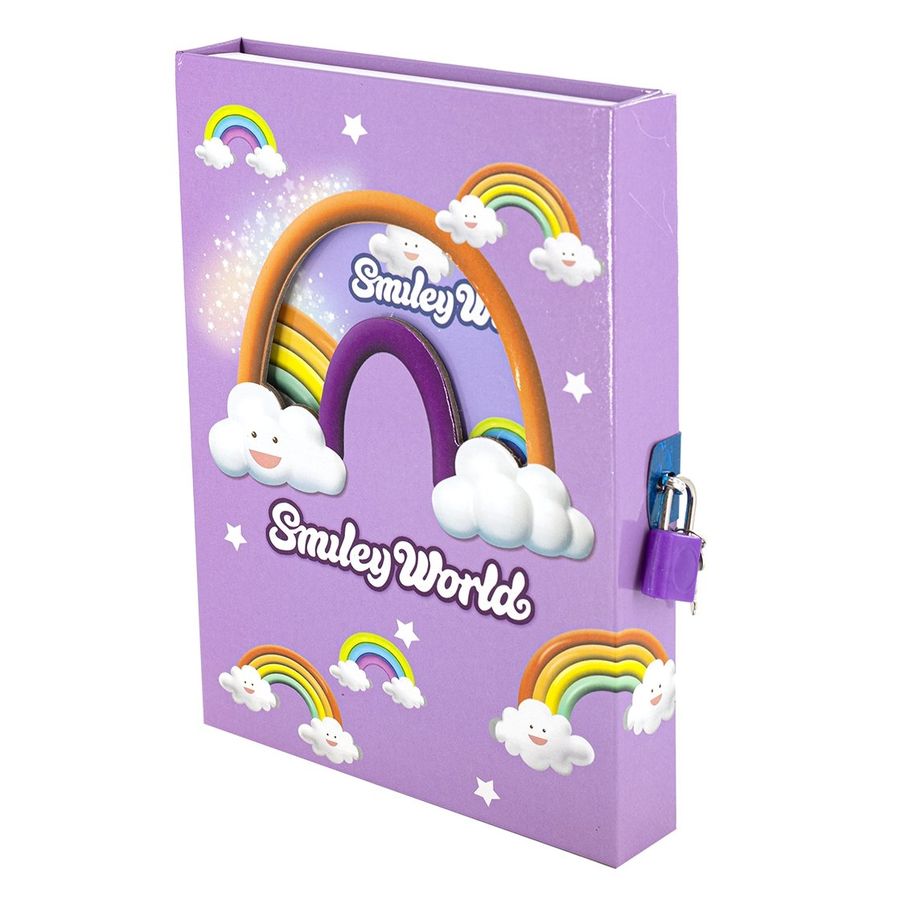 Блокнот с замком А5 45л линия Радуга сиреневый лам. футляр ALINGAR AL10688/3