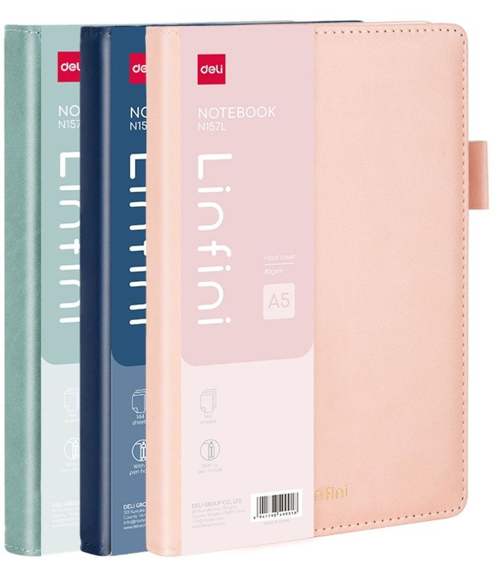 Блокнот A5 144л линия тв.обл. Linfini иск.кожа ляссе ассорти DELI EN157L