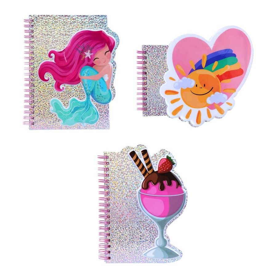 Записная книжка фигурная, 17...20х13…16,5см, 60 листов, обложка из голографического картона, аппликация из ПВХ, спираль, 3 дизайна