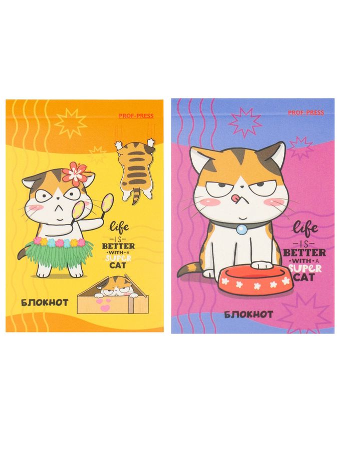 Блокнот А7 48л клетка склейка Забавный котенок ассорти PROF-PRESS Б48-3306