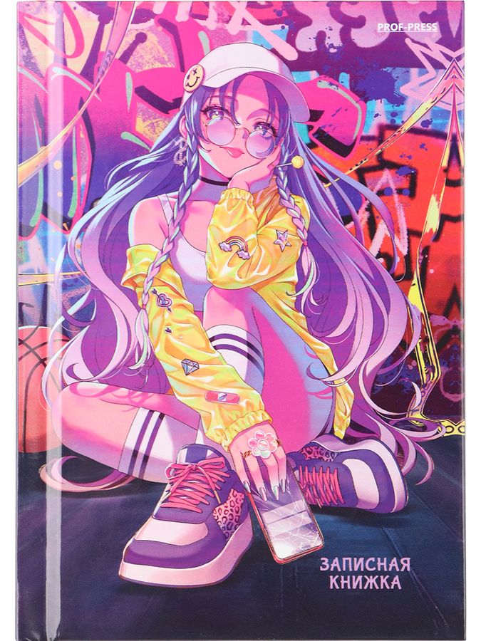 Книжка записная А6 96л клетка тв.обл. Уличная анимешница глянц.лам. PROF-PRESS 96-6260