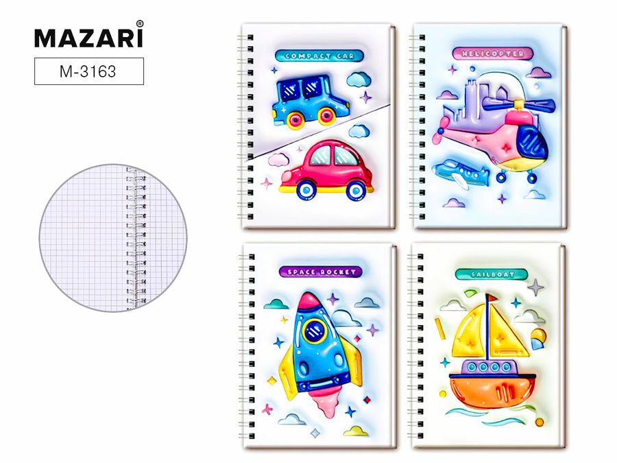 Блокнот А6 78л клетка гребень тв.обл. Транспорт объемные 3D ассорти MAZARI M-3163