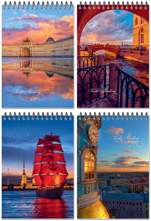 Блокнот А5 50л клетка гребень Атмосферный Питер УФ-лак ассорти ПОЛИНОМ 3339