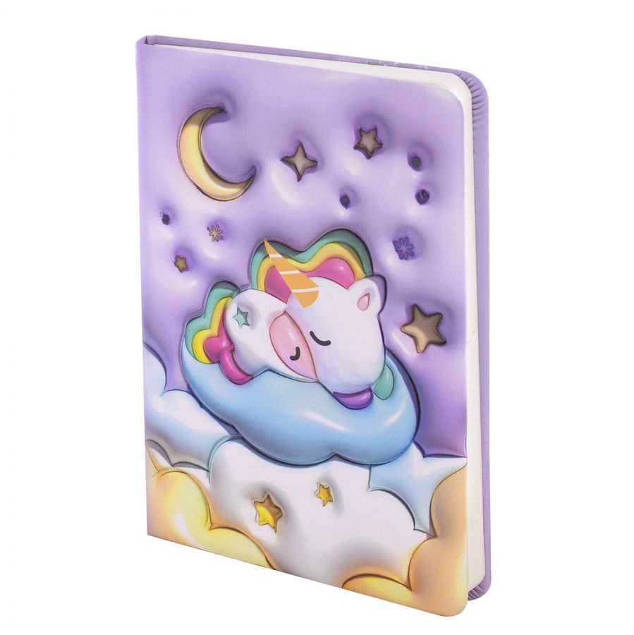 Подарочный блокнот 13,0 см * 18,0 см , 7БЦ, Alingar, PU, поролон, конгрев, эффект 3D, 80л., линия, "Единорожка", сиреневый.