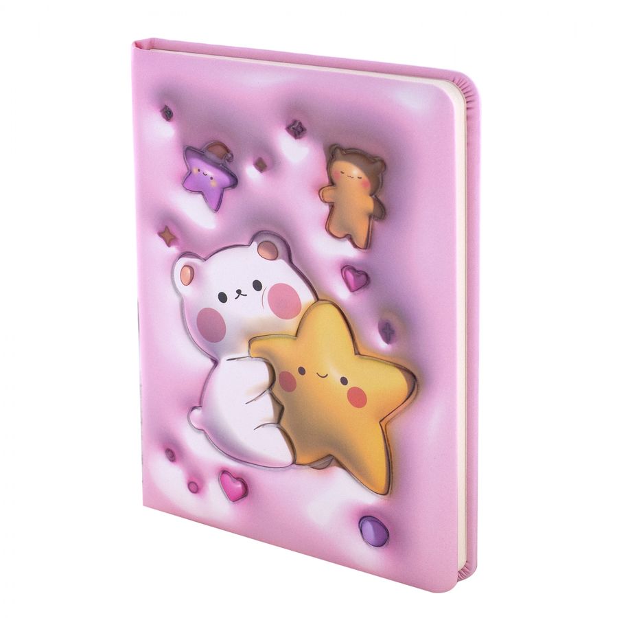 Подарочный блокнот 13,0 см * 18,0 см , 7БЦ, Alingar, PU, поролон, конгрев, эффект 3D, 80л., линия, "Мишка", розовый