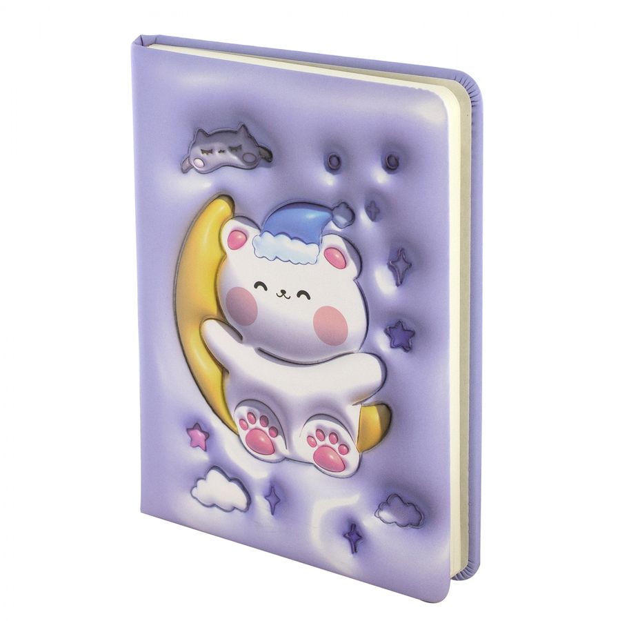 Подарочный блокнот 13,0 см * 18,0 см , 7БЦ, Alingar, PU, поролон, конгрев, эффект 3D, 80л., линия, "Мишка", сиреневый
