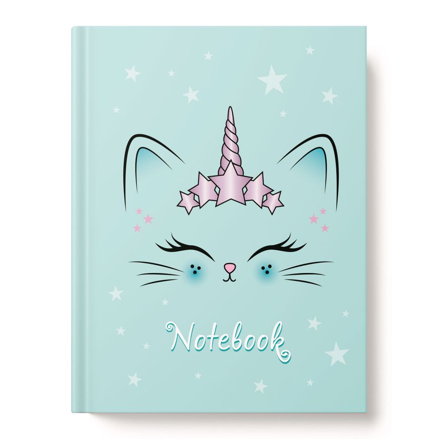 Книжка записная Кот Единорожка, формат А6 64л, твердый переплет, матовая ламинация, глиттер, артикул 14379