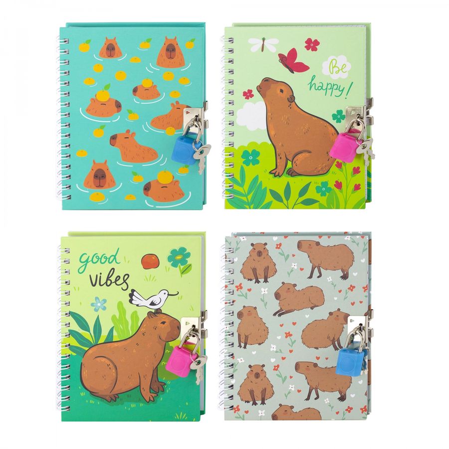 Блокнот с замком А6 48л клетка гребень тв.обл. Капибары ассорти ALINGAR AL11313