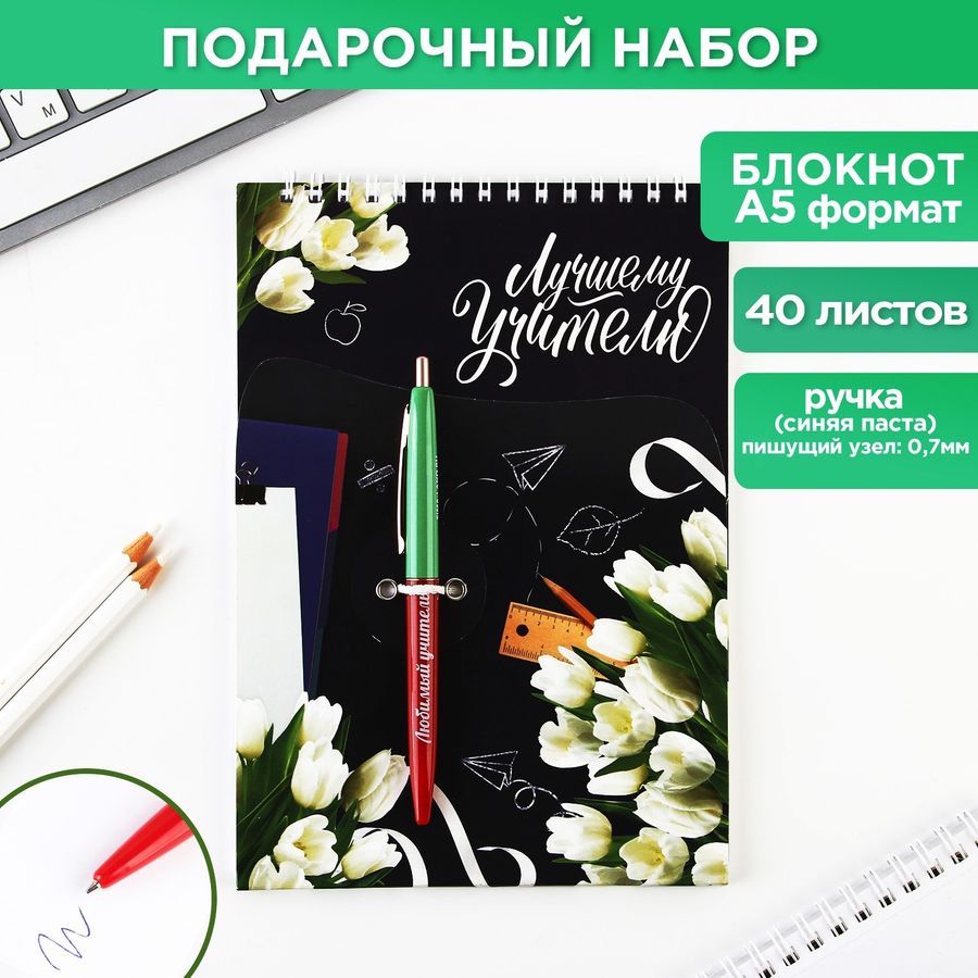 Набор Блокнот А5 40л + Ручка шариковая син. 0.7мм Лучшему учителю ArtFox 9506619