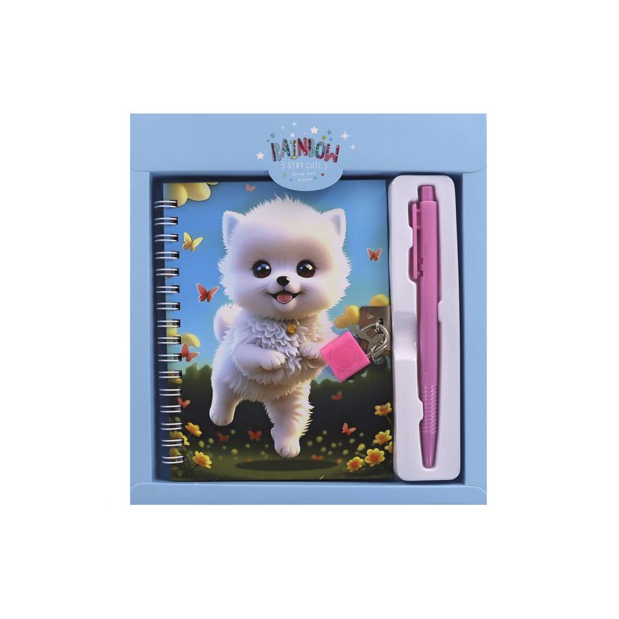 Набор Блокнот с замком 175х195мм 45л клетка тв.обл. + Ручка  Милый шпиц голубой ALINGAR AL11281/1