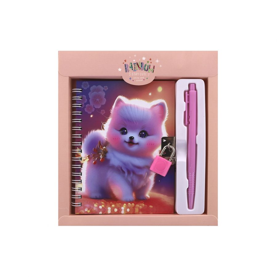 Набор Блокнот с замком 175х195мм 45л клетка тв.обл. + Ручка Милый шпиц персиковый ALINGAR AL11281/3