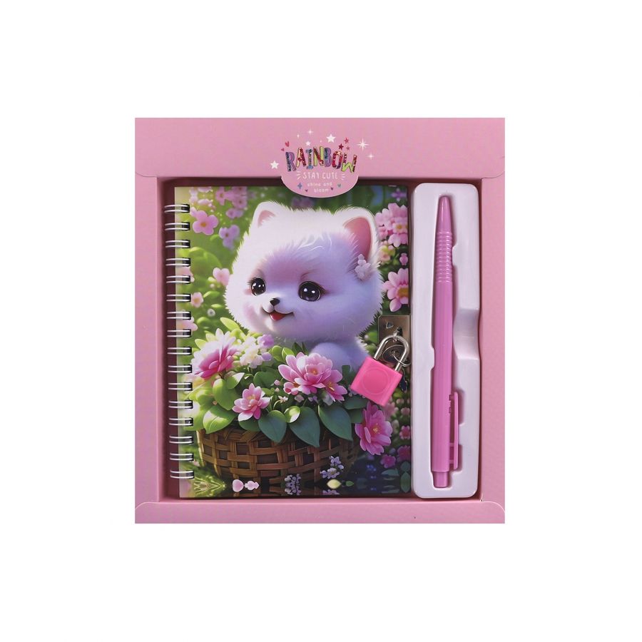 Набор Блокнот с замком 175х195мм 45л клетка тв.обл. + Ручка Милый шпиц розовый ALINGAR AL11281